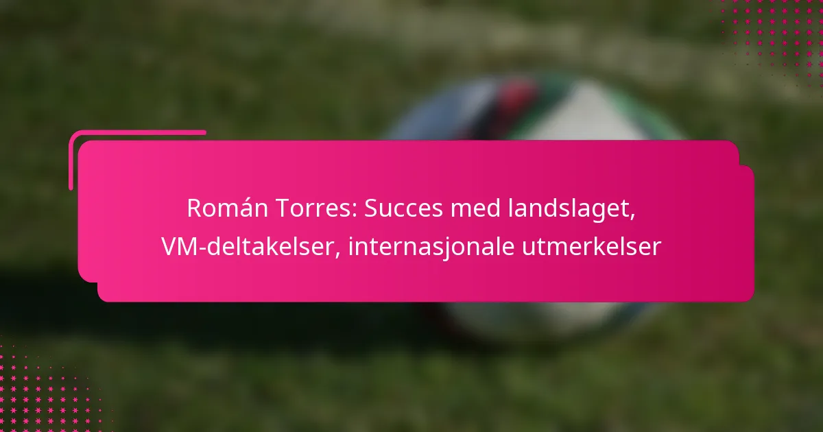Román Torres har oppnådd betydelige internasjonale utmerkelser gjennom sin fotballkarriere, spesielt med det panamanske landslaget. Hans bidrag har vært avgjørende i store turneringer, inkludert FIFA verdensmesterskapet og CONCACAF Gold Cup, noe som fremhever hans status som en nøkkelspiller og leder.